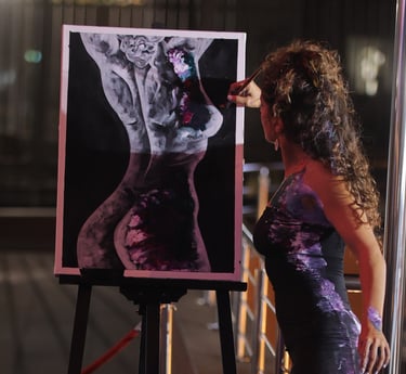 Artista visual y escénica que une danza y pintura para crear obras únicas y experiencias multisensoriales.